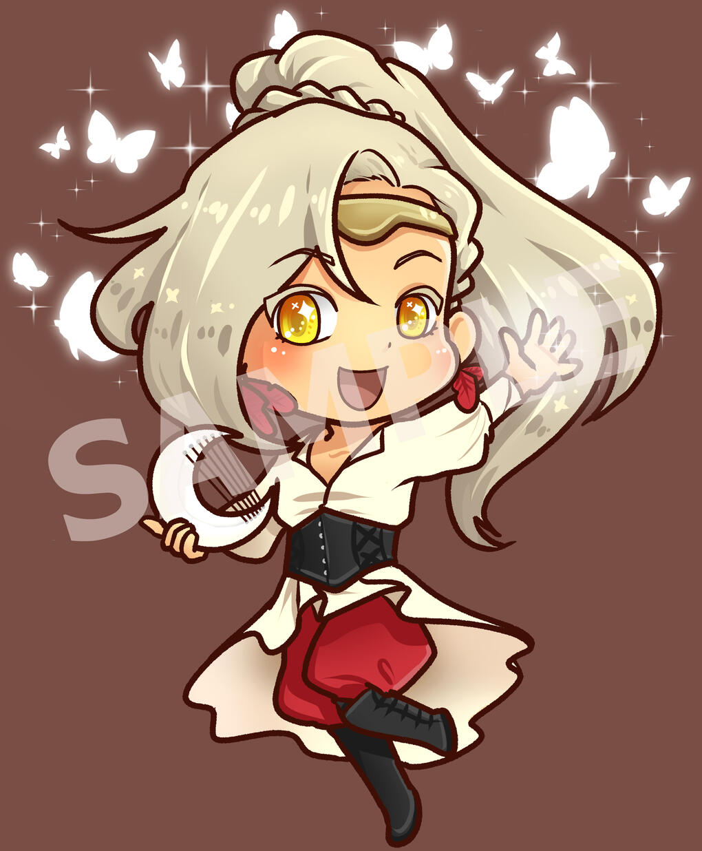 Fully rendered chibi-style character with your choice of a simple background or transparent png background. Effects like the butterflies in the example above are optional